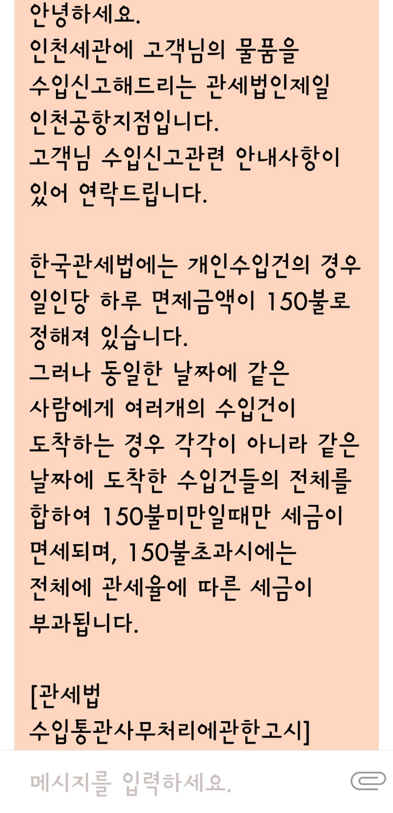 두개의 택배가 같은날 통관되어 구매 금액이 150불을 넘어버리지 않도록 하시는게 중요해요!